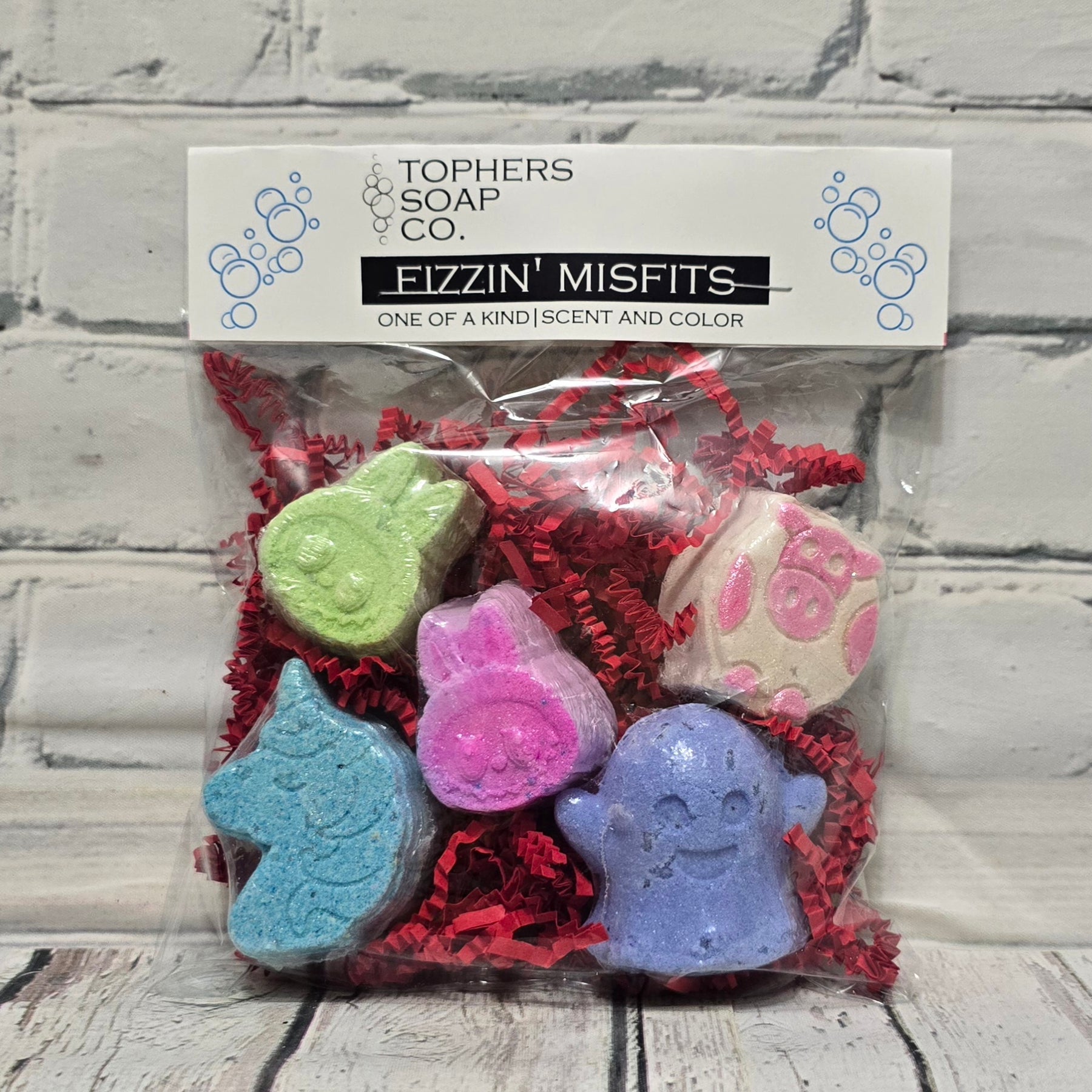 Meet the Fizzin' Misfits — the quirky, colorful rebels of the bath bomb world. Crafted from the extra bits of past premium batches, these vibrant fizzers might not win a beauty contest, but they bring the same skin-loving ingredients and luxurious fizz as our top-tier classics.