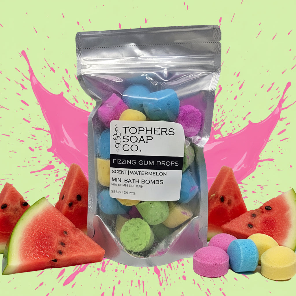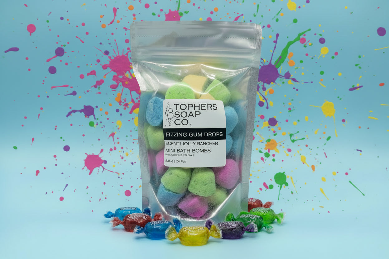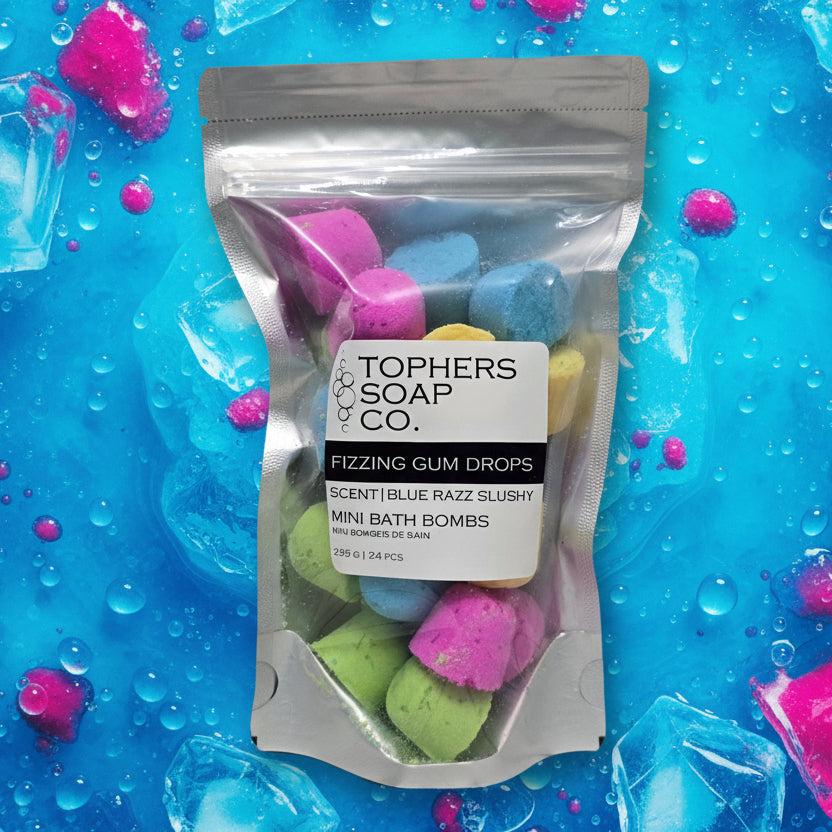 Say hello to Fizzing Gum Drops—a colorful collection of mini foaming bath bombs that turn every bath into a bubbly, scented adventure! Each drop is just under half an ounce, making them perfect for kids, shallow baths, or relaxing foot soaks.